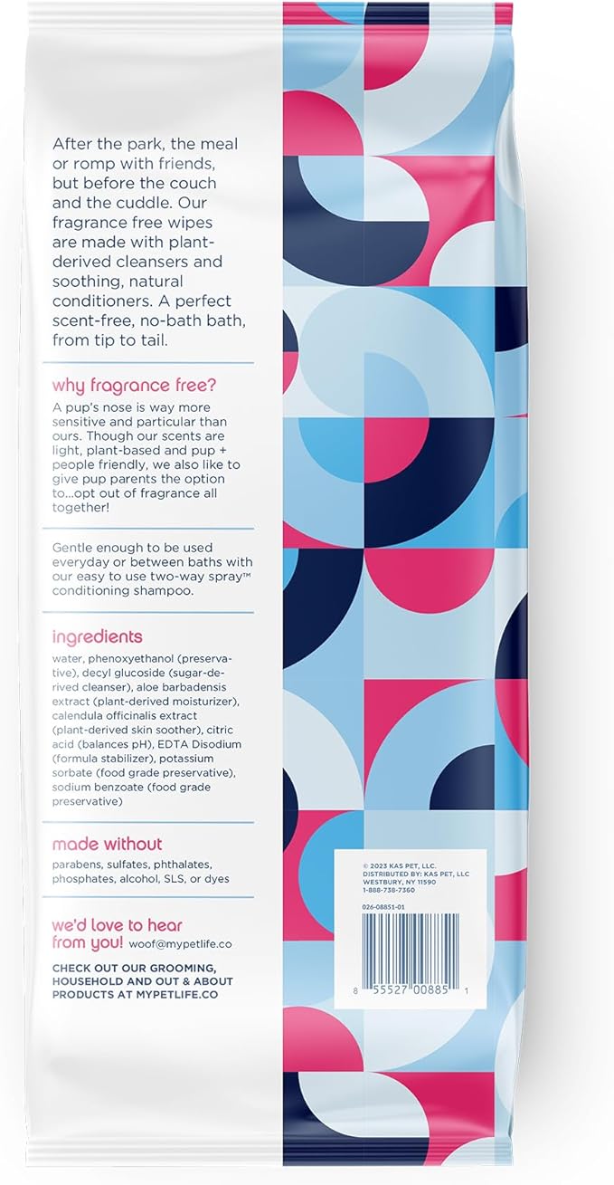 • FRAGRANCE-FREE FORMULA: While our light, plant-based scents are pup and people-friendly, we understand that your pup's nose is ultra-sensitive. With our fragrance-free pet wipes for dogs, you can ensure these dog cleaning wipes are a gentle and fresh clean for your furry friend without any added scent. Because sometimes, less is more when it comes to pampering your pup!