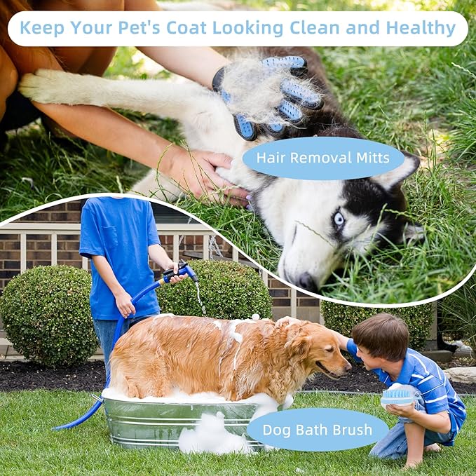 • Care about Pet Fur Health: The set includes hair removal mitts and dog bath brush to help effectively remove loose fur and reduce shedding. With these grooming tools, you can keep your pet's coat looking clean and healthy.