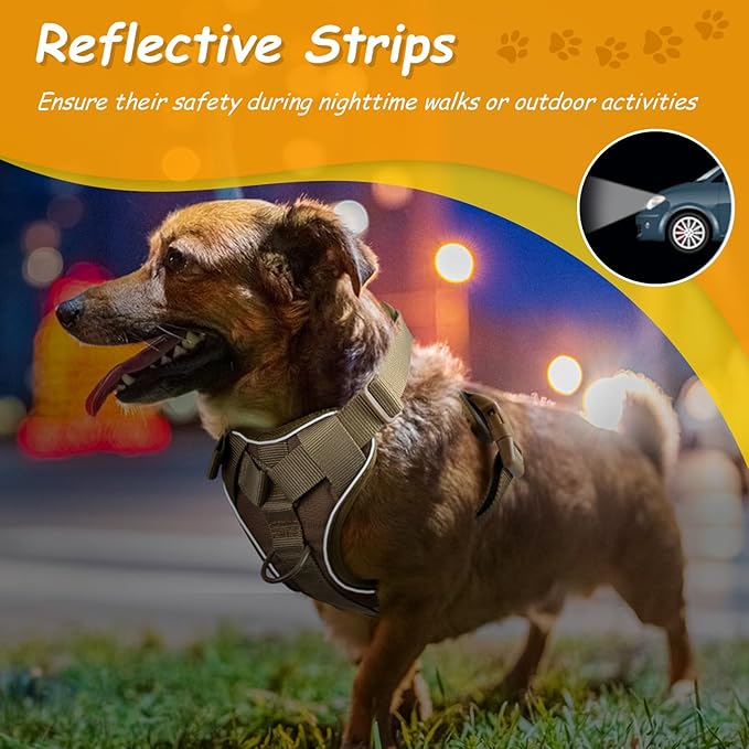 • Reflective Safety: Your dog's safety is our top priority, especially during nighttime walks. That's why our dog vest harness is designed with reflective strips, ensuring visibility even in low-light conditions. Feel confident knowing you and your furry friend are easily visible to others, providing added safety during walks.