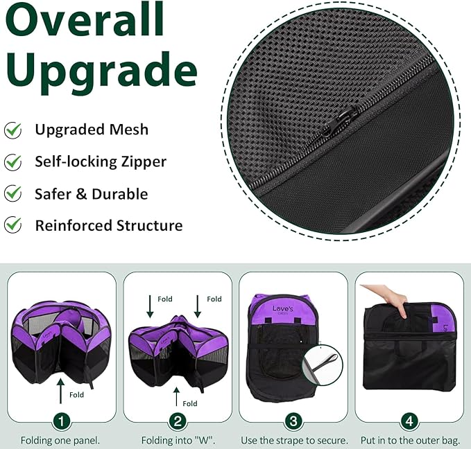 Love's cabin Pet Puppy Dog Playpen, Large Dog Tent Crates Cage Indoor/Outdoor, Portable Playpen for Dog and Cat, Foldable Pop Up Dog Kennel Playpen with Carring Case, Removable Zipper Top, Purple