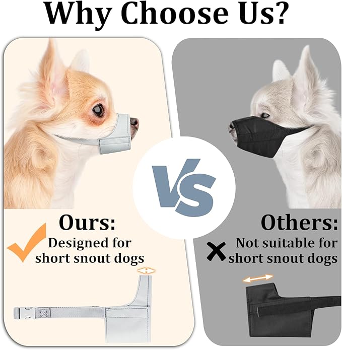 Mayerzon Short Snout Dog Muzzle, Small Muzzle for Chihuahua Shih Tzu American Bully Boxer Puppy, Soft Fabric Muzzles for Grooming Vet Visits