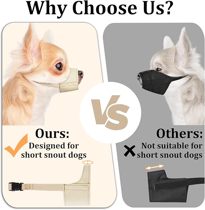 Mayerzon Short Snout Dog Muzzle, Small Muzzle for Chihuahua Shih Tzu American Bully Boxer Puppy, Soft Fabric Muzzles for Grooming Vet Visits
