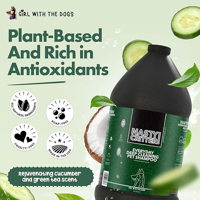 • TRUSTED BY GIRL WITH THE DOGS. NASTY CRITTER! deep cleaning pet shampoo gently cleanses and moisturizes all coat types. This hypoallergenic shampoo is recommended by Girl With The Dogs for pets with dry & sensitive skin, promoting their well-being.