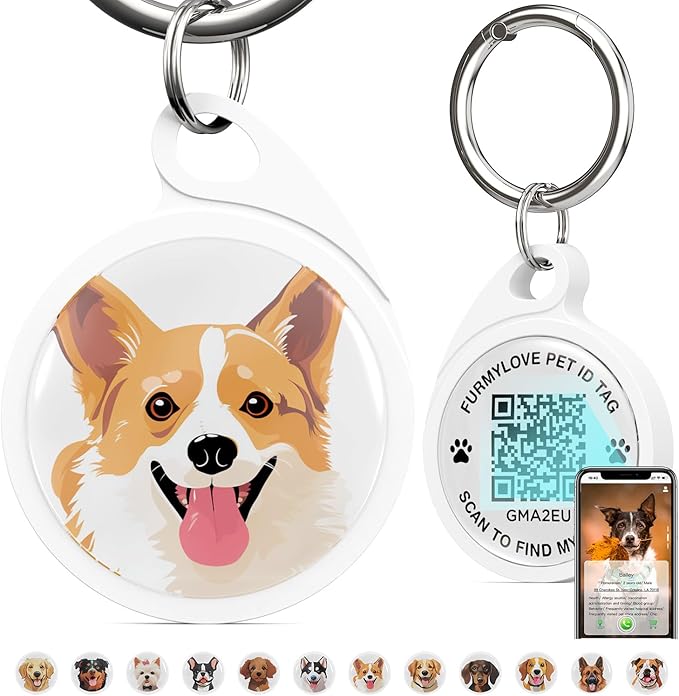 QR Code Dog Tag, Dog Tags Personalized Silent Pet ID Tag Customizable Free Pet Online Profile, Corgi