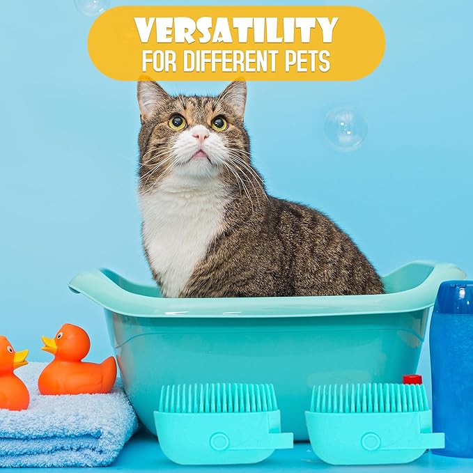 • Easy to Use: This pet scrubber bath brush has non-slip hand grip design that providing a comfortable hold even when wet. Plus, its clever design also allows for easy shampoo dispensing. Simply squeeze it and shampoo will flows out.