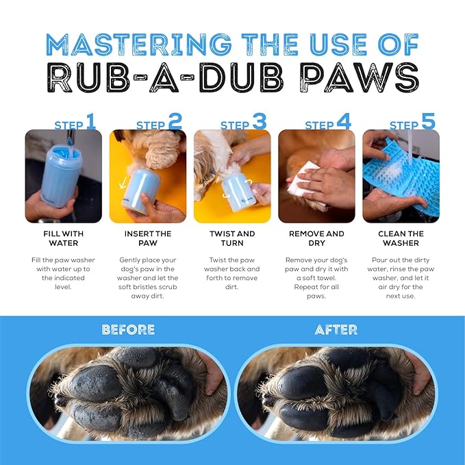 • PORTABLE AND CONVENIENT: Our muddy paw solutions for dogs are lightweight and portable, making it easy to carry on outdoor adventures. This dog foot cleaner paw washer is a must-have among your pet items, ensuring clean paws for your dog wherever you go.