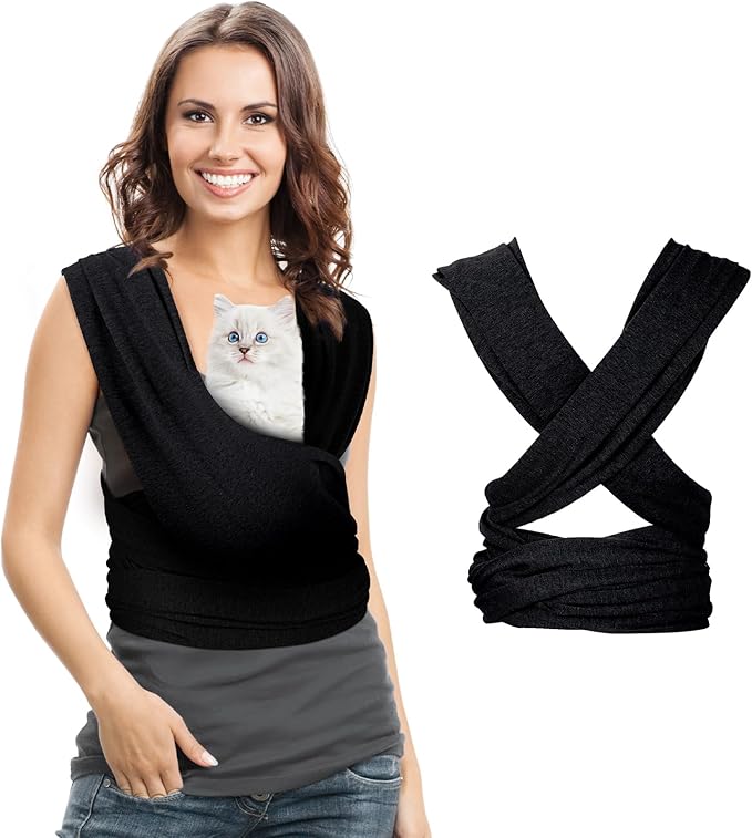 Cat Sling Carriers, Front Facing Dog Sling, Cat Wrap Carrier Chest, Hands Free, Size Adjustable, Soft Cotton, Cat Swaddle Bag for Outdoor(Black)