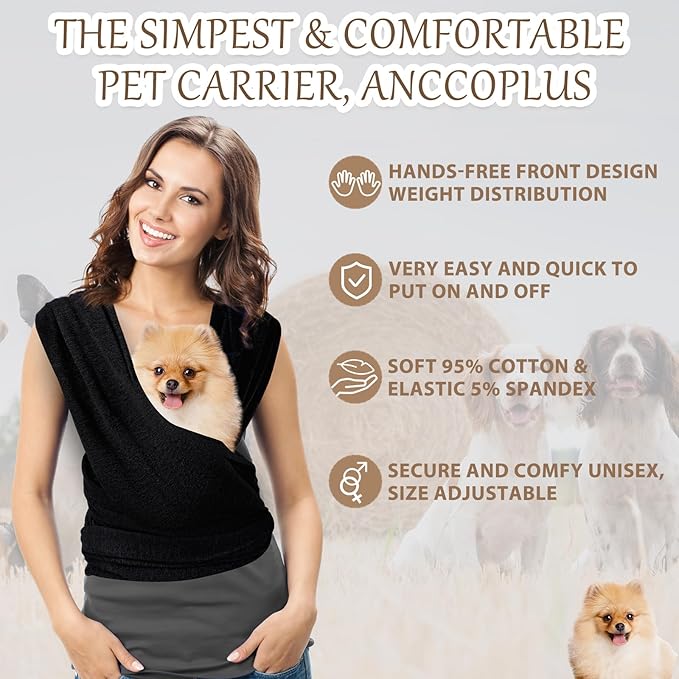 • Quality Material: these are presented in an appealing black color and made with quality 95% cotton and 5% spandex for adding comfort; The package includes a piece of dog sling carrier, providing you with a complete pet carrying solution; They are also easy to care and clean and you can wash it in washing machine