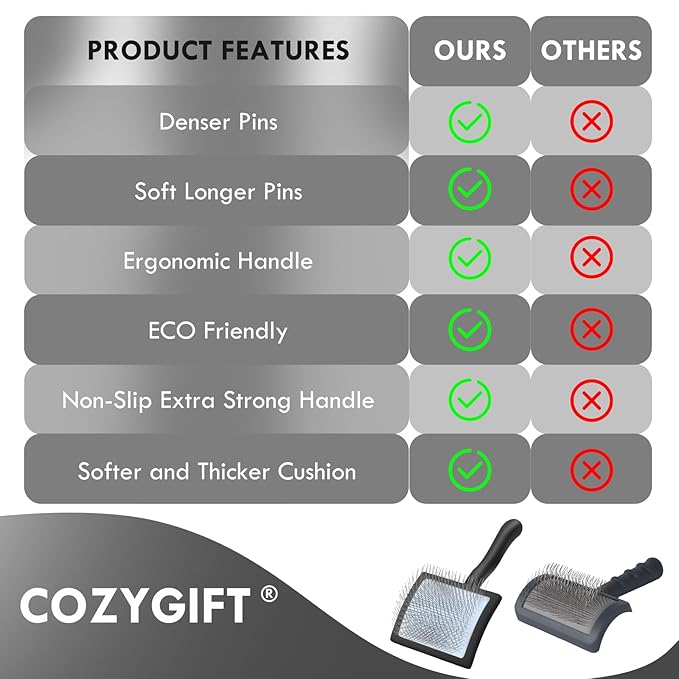 • [100% Guarantee] This slicker brush is well-priced and designed for your convenience. Keep one at home and another in the car for easy grooming on the go. It’s also a thoughtful gift for family, friends, and colleagues—COZYGIFT dog grooming brush is a sweet choice for pet lovers.