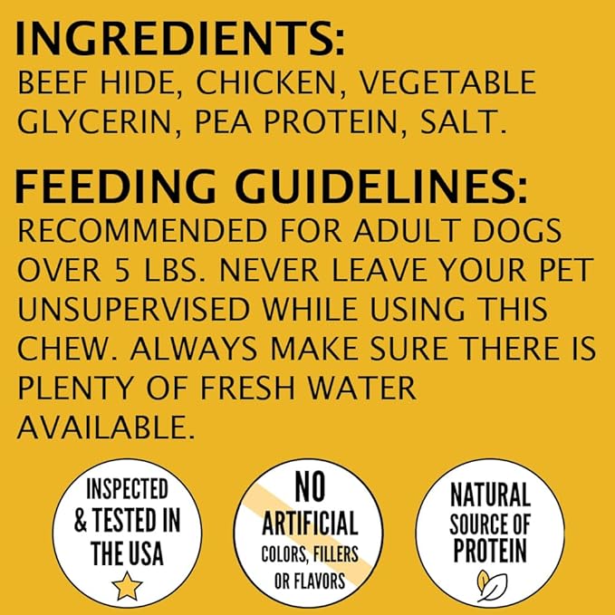 • Natural Ingredients: Made with real chicken and high-quality rawhide, these treats are free from artificial additives, ensuring a healthy snack for your pet.