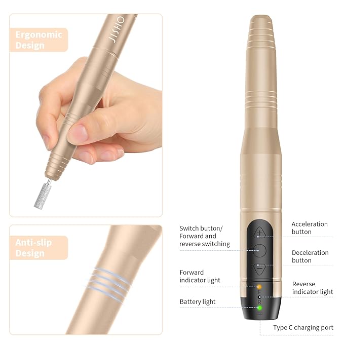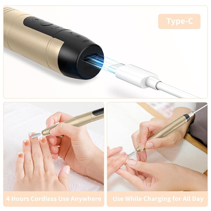 • 【Portable and On-the-Go Convenience】Electric Nail Drill is designed for your convenience. Weighing only 76g and compact in size, it easily fits into your bag, allowing you to enjoy nail care anytime, anywhere. Whether you're traveling, on a business trip, or simply at home, our product ensures your nails receive the perfect care they deserve.