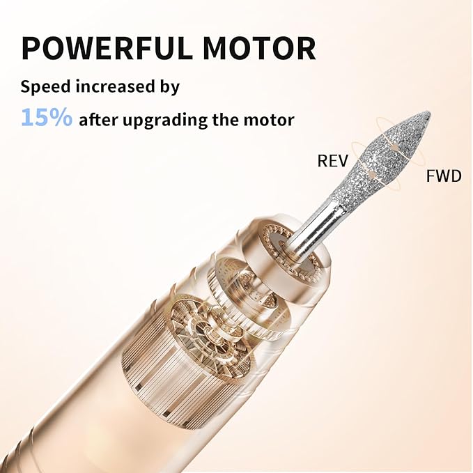 • 【Effortless Nail Care】Experience efficient and automated nail care with our Nail Drill Machine. With a minimum speed of 6000 RPM and a maximum of 15000 RPM, it offers a seamless range of speeds for various nail care needs. Whether you're removing nail polish, shaping your nails, or eliminating dead skin, our product effortlessly rejuvenates your nails.