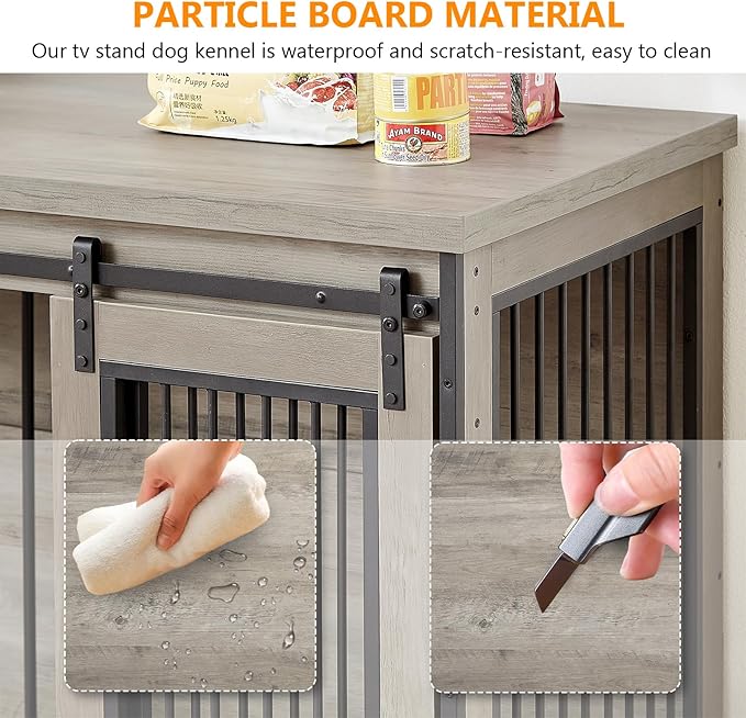 • 【Multifunctional Use】This is not only a double dog crate furniture for 2 large dogs, but also a tv stand dog crate. There is plenty of tabletop space for storing bulky items. You can put a TV on it, and enjoy a good time with your pets.