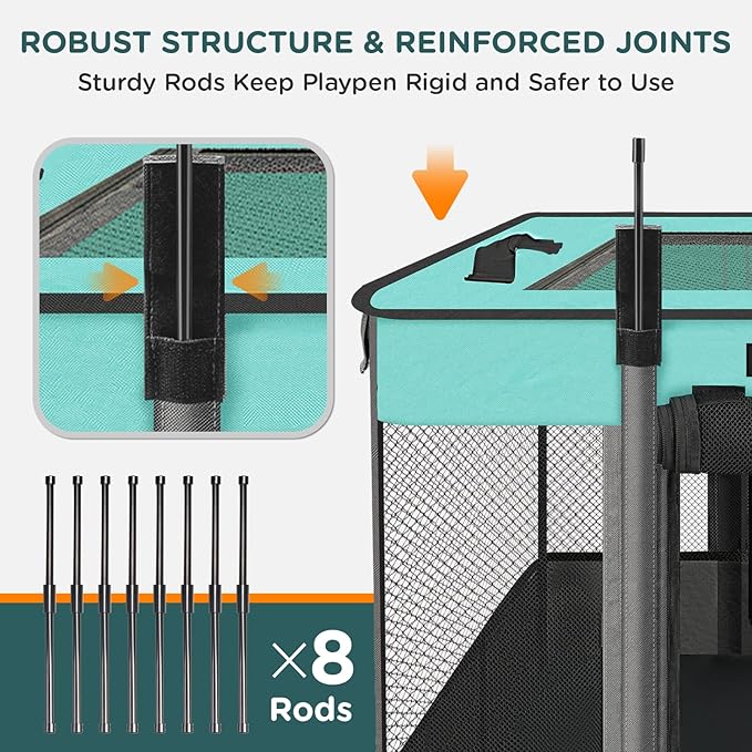 • Portable Design: Portable small Animal playpen assembly can be completed in 3 minutes by unfolding the portable pet playpen and inserting the support rods. (You can check our video or user manual for specific installation and folding methods.)Portable dog cat playpen can be folded when not in use, suitable for indoor, outdoor, travel, camping, and more.