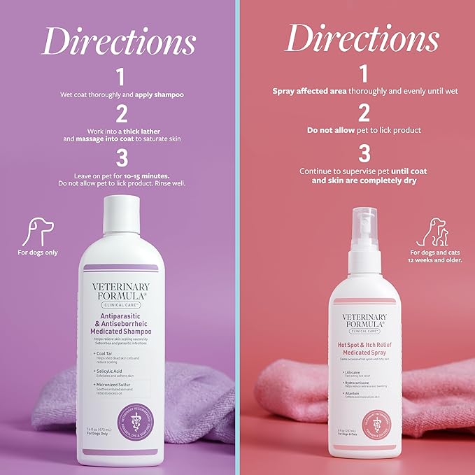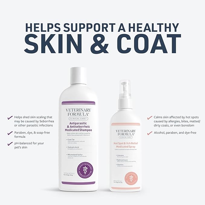 Veterinary Formula Clinical Care Antiparasitic & Antiseborrheic Medicated Dog Shampoo & Clinical Care Hot Spot & Itch Relief Medicated Spray, 8oz