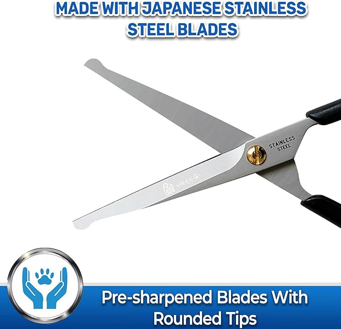 • Rounded tips for safety. No need to worry about poking your pet's skin with these round-tipped scissors. Safer to use around the face and ears