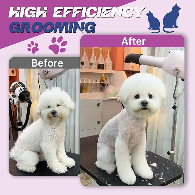 • Adjustment Screw & Muffler: The adjustable screw allows you to fine-tune the tension of the blades, providing precise control based on your furry friends' grooming needs. Additionally, the muffler reduces noise levels and alleviate any stress and anxiety that your pet may feel during grooming.