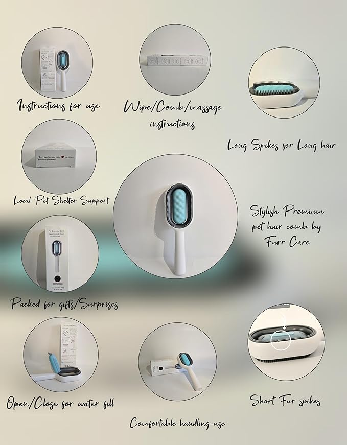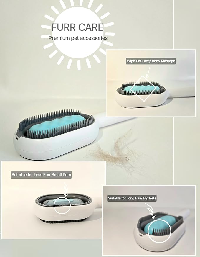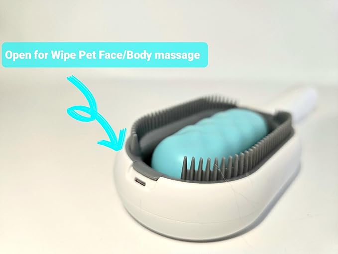 • 🐩 3-in-1 Grooming Solution: Combines comb, massager, and face wipe
