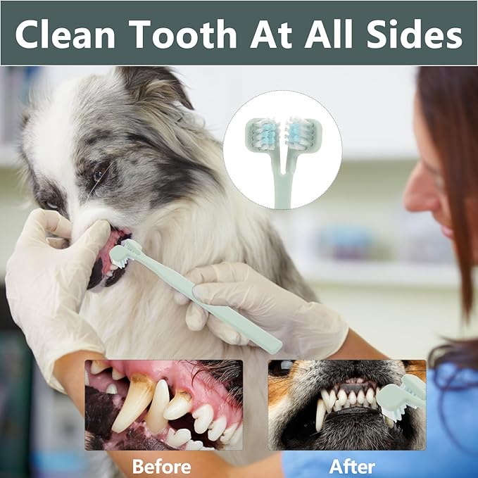 • Caring for the health of pet teeth: 2 side brush heads can thoroughly clean pet teeth, which is more convenient and efficient. At the same time, the soft bristles will not cause harm to the gums, caring for your pet's teeth. The dog toothbrush handle is made of rubber, non-slip and comfortable to hold. The hanging hole design can be hung for easy storage.