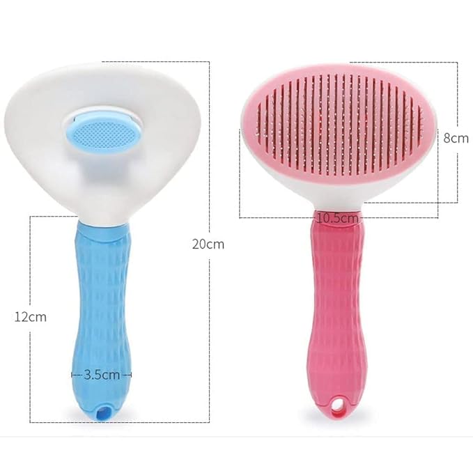Self-Cleaning Slicker Brush for Deshedding Pets - Smooth Handle with Cleaning Button, Ideal for Grooming and Massaging Dogs and Cats (Blue)