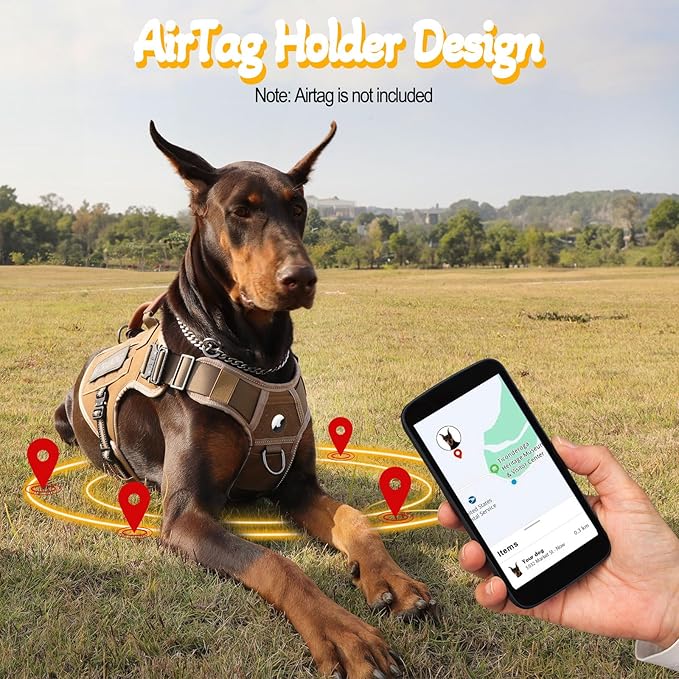 - [With AirTag Holder and Reflective for Safety] - Service dog vest with reflective stitching is a nice bonus for night time walks, fluorescent stitching really stands out in the dark when hit with a light. The chest molle system has AirTag holder, provide good location protection for our dog when Training,Hunting and Walking. Also come with removable ID card that can write the info such as dog's name, phone number, address or any medical information that may be necessary in an emergency