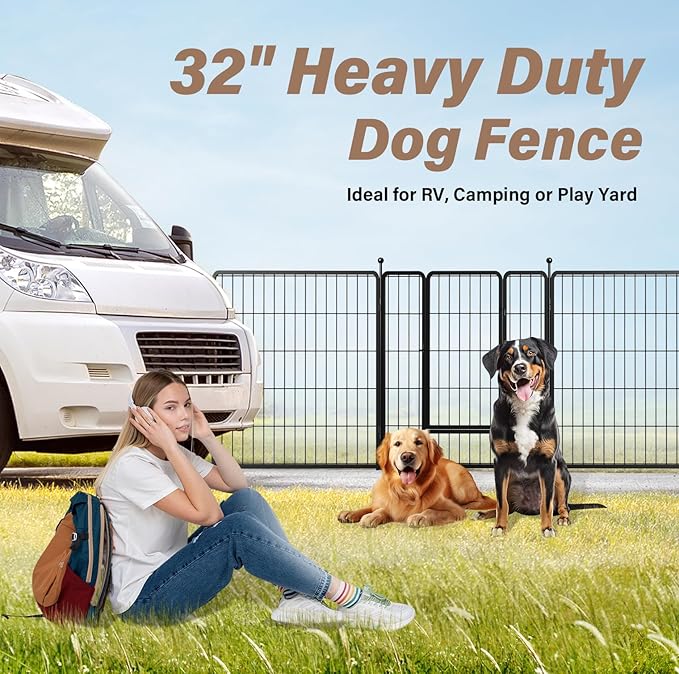• 【Wide Application】The playpen for dogs uses metal material, which are very suitable for RV camping, traveling, or use in the yard. When used indoors, we recommend placing it on a dog pad or carpet to prevent the rods from scratching the floor.