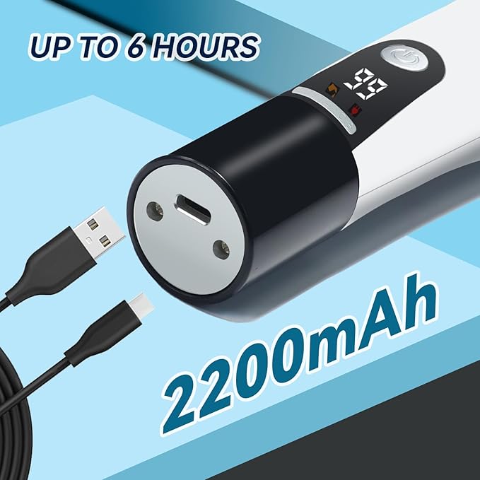 • 【 Built-in large capacity rechargeable battery】 Dog clippers with built-in 2200mAh high-capacity battery, can be used for about 5-6 hours when fully charged in 2-3 hours. The USB charging strap has an indicator light, and there is no problem using it while charging.