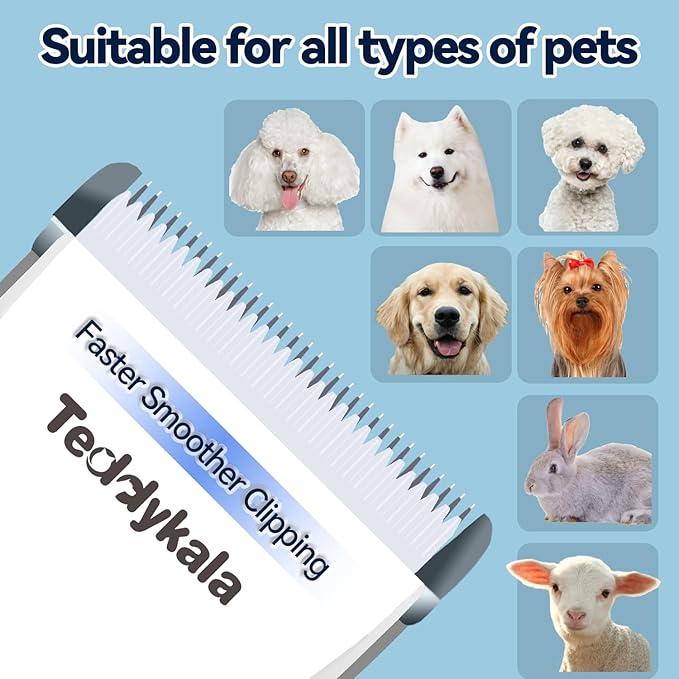 • 【33 tooth dense tooth Detachable blade for safety and sharpness】 Removeable cutting head is easy to clean, and the upgraded R-shaped rounded ceramic blade is sharp enough not to rust or burn easily. It is also very suitable for trimming small areas such as claws, ears, and eyes. No hair stuck, no scalding,33 tooth dense tooth detachable blade,Adopting professional wool shearing standards.