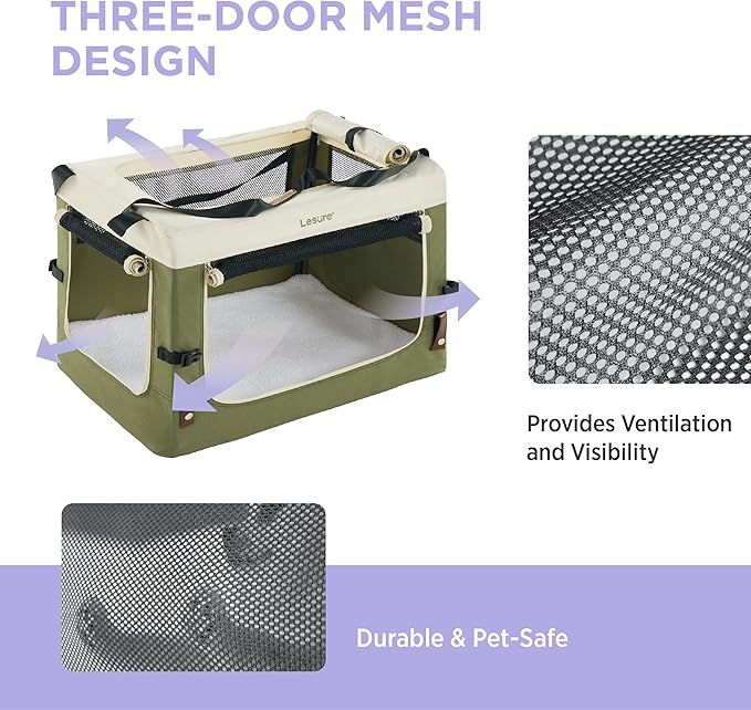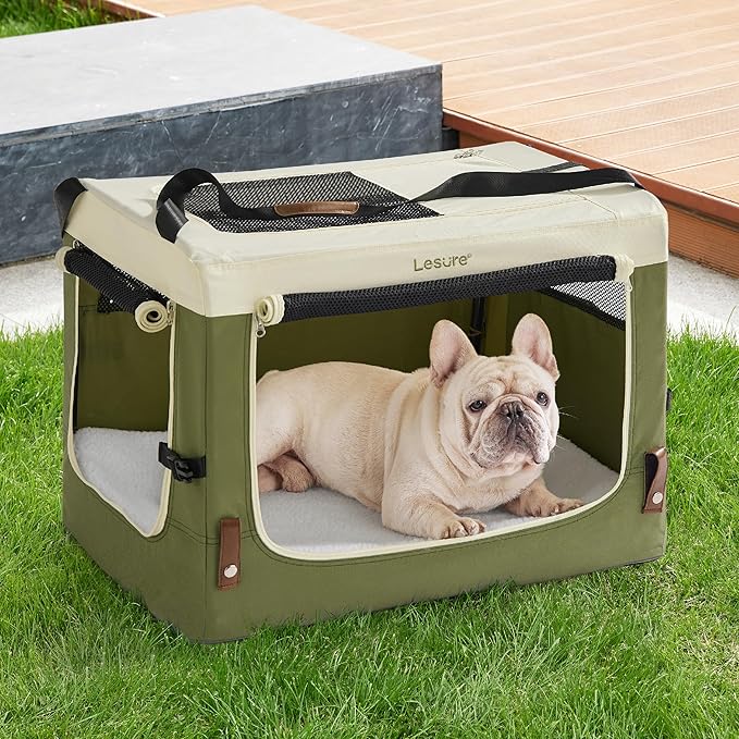 • Safety First, Adventures Always: Engineered with a sturdy frame and scratch-resistant mesh, this crate is a must-have for your adventurous companion. Escape-proof zippers combine with a built-in safety belt and a reinforced PU leather buckle for easy in-car use—so you can travel with confidence, knowing your buddy is snug and secure. Plus, the dual layer bottom provides a safety net for your peace of mind.