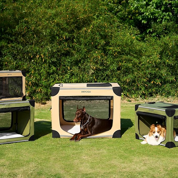 • Collapsible Dog Crate: EHEYCIGA portable dog crates have different sizes for small, medium, large and extra large dogs. It can provide a safe and comfortable dwelling for your pet which can be set up in seconds without tools. Also It can be folded down instantly to save space when traveling or when not in use.