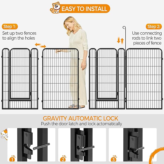 • Great for Camping: Sold in a set of 12-panel dog playpens. The unique fold-and-carry design allows you to transfer the puppy playpen from your home to your vehicle quickly if you need to go RV camping or travel with your puppy dog