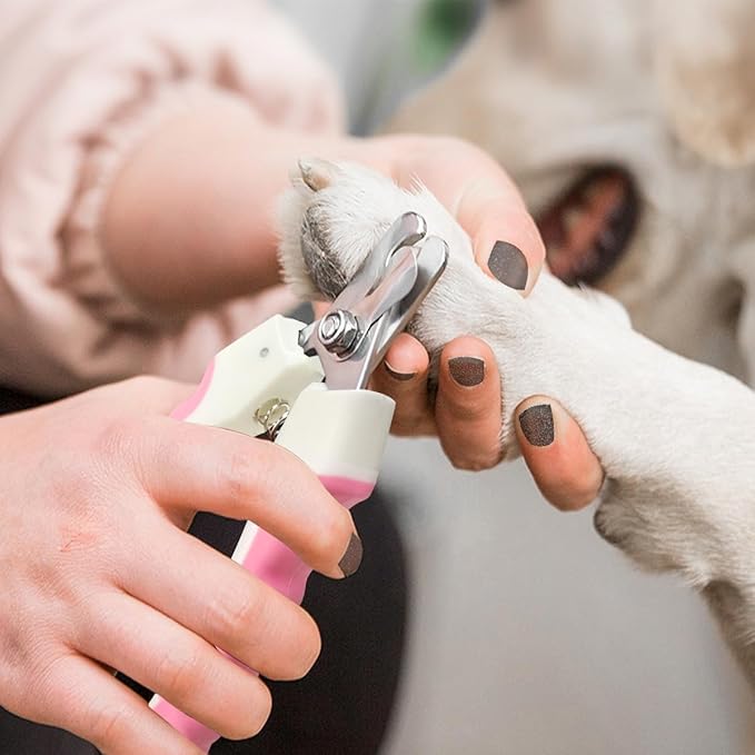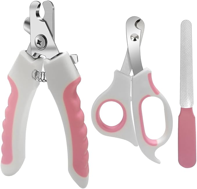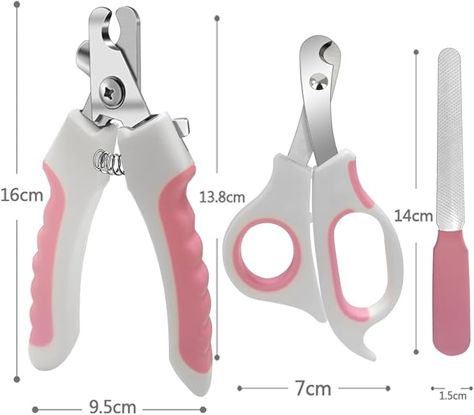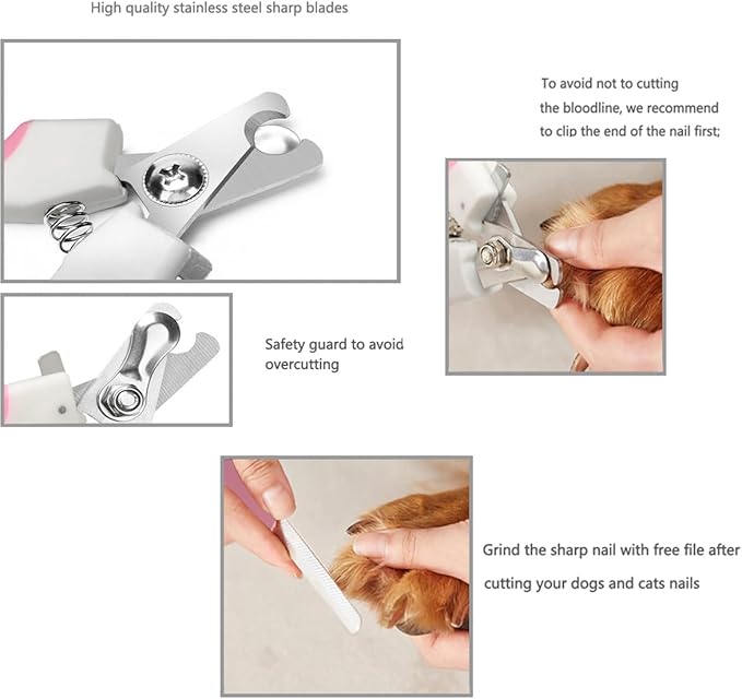 Pet Nail Clippers and Trimmers Set Safety Guard to Avoid Over Cutting Razor Sharp Blades Grooming Tool for All Small Large Dog Cat (Pink)