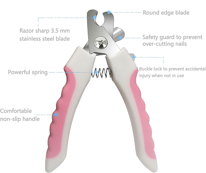 • Friendly Design: Pet nail clipper sharp blades made of hight quality stainless with safety guard to avoid over cutting; Strong spring to trim your dogs or cats nails with just one cut;