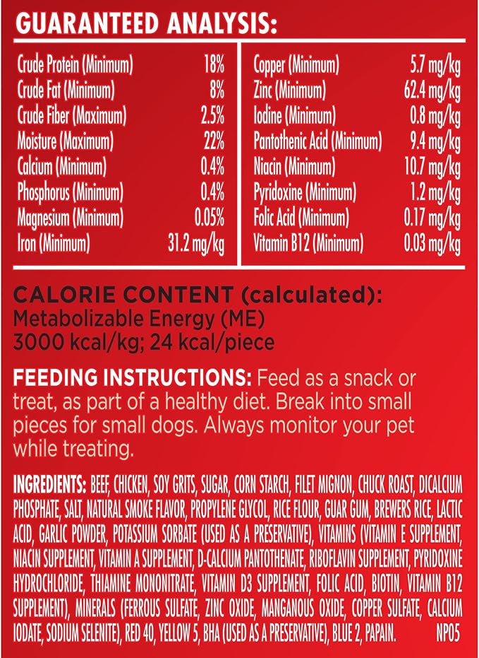 • Contains (1) 25 ounce canister of Milk-Bone Soft and Chewy Beef and Filet Mignon Recipe with Chuck Roast dog treats and (1) 25 ounce canister of Milk-Bone Soft and Chewy Chicken Recipe with Chicken Breast dog treats