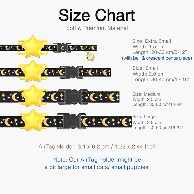 • 【Stylish & Eye-catching Design】Featuring an exclusive moon and star design collar and adorable sun-shaped AirTag holder, your dog will not only be safe but also make a fashion statement. Prepare for an influx of compliments on your dog's stylish appearance.