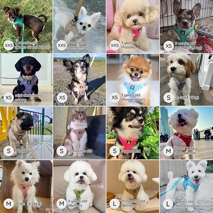 • 【Breathable Air Mesh】The puppy harness are made with soft mesh fabric, it’s lightweight but sturdy, easy to clean and quick-dry. The step in harness design make the pulling pressure distributed to the body to prevent choking.
