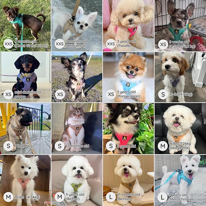 • 【Breathable Air Mesh】The puppy harness are made with soft mesh fabric, it’s lightweight but sturdy, easy to clean and quick-dry. The step in harness design make the pulling pressure distributed to the body to prevent choking.