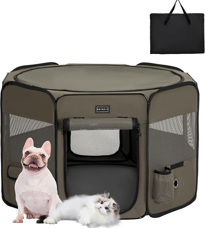 PETSFIT Dog Pen Indoor, Anti-Leakage Bottom, Foldable, Collapsible Dog Playpen Indoor/Outdoor for Cats