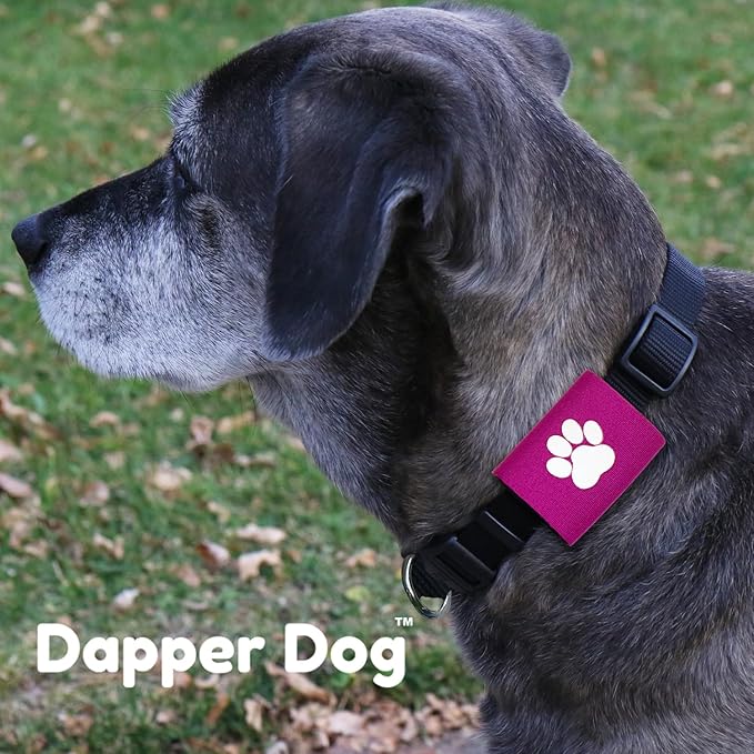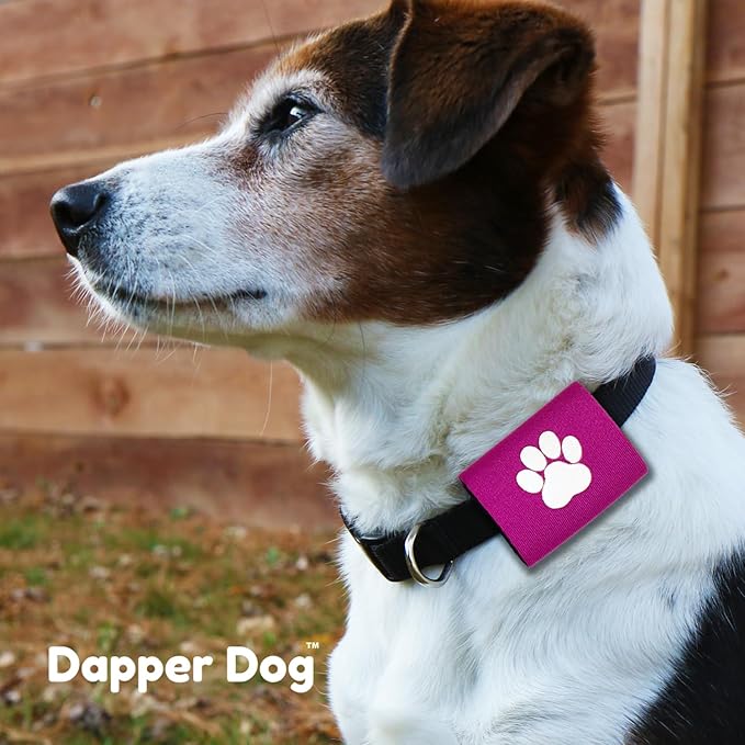Dapper Dog Pet Tag Silencer and AirTag Holder (Purple with White Paw)