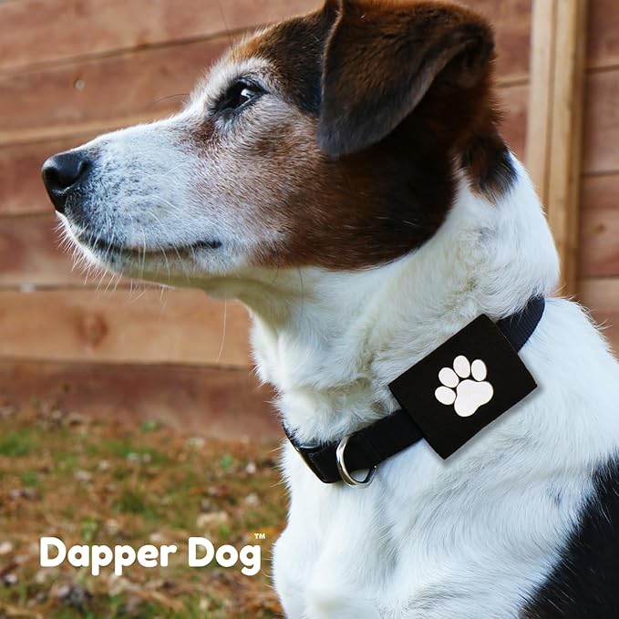 Dapper Dog Pet Tag Silencer and AirTag Holder (Black with White Paw)