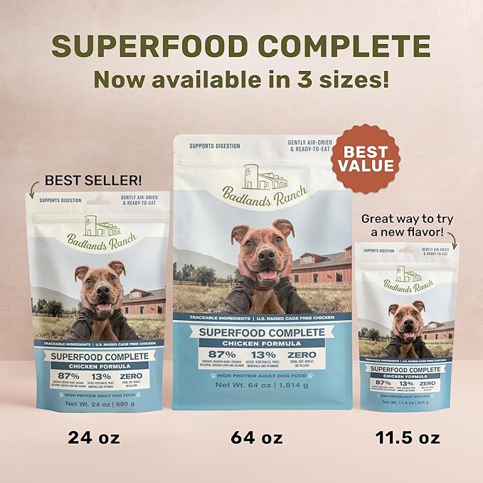 Superfood Complete, Air-Dried Adult Dog Food - High Protein, Zero Fillers, Superfood Nutrition by Katherine Heigl (11.5 oz., Premium Chicken)