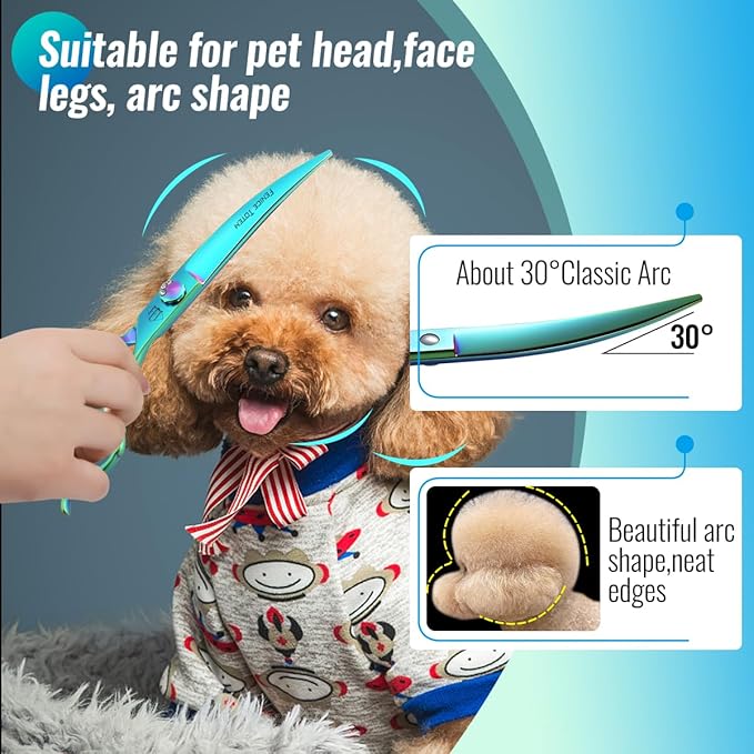 Dog Grooming Scissors: 7" Curved Pet Shears Made Of Japanese 440C for Trimming Dogs Cats and Other Pets Green