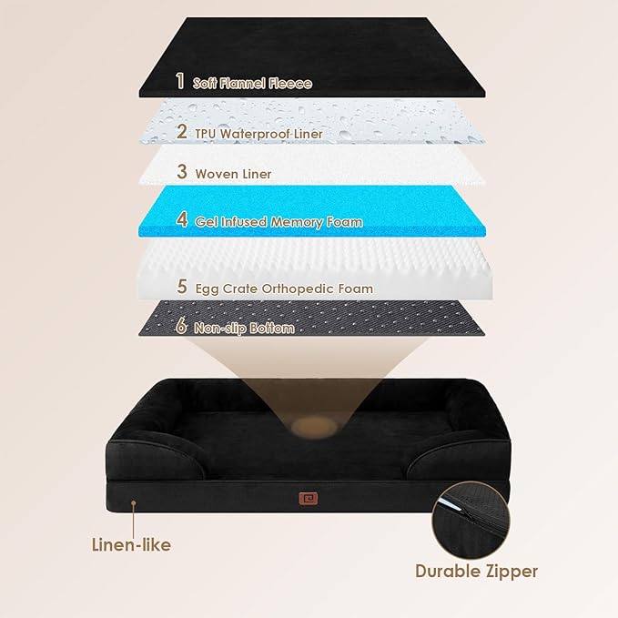• MEMORY FOAM: The EHEYCIGA orthopedic dog bed features memory foam and egg crate foam to provide even support and pressure relief. It offers a good balance of softness and support, making it particularly suitable for elderly dogs to alleviate joint pressure.
