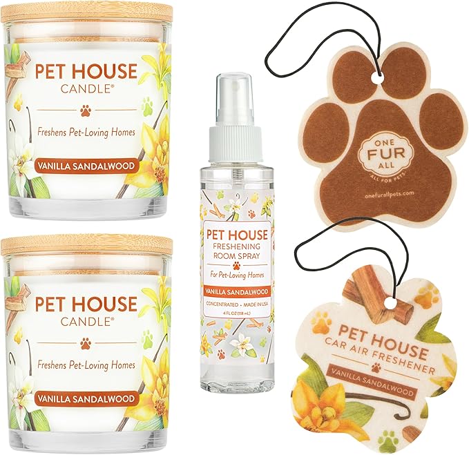 One Fur All Value Pack, Scented Pet Friendly Candles, Room Spray and Car Air Fresheners, Long Lasting Pet Odor Solutions for Home, Vanilla Sandalwood