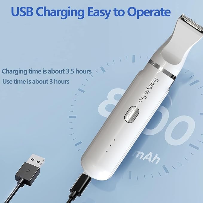• 【Works Cordlessly】: This pet shaver has a long battery life and a built-in battery rechargeable trimmer for great flexibility. It only needs to be charged for 3.5 hours to last for 180 minutes, which can save the cost of disposable batteries. Cordless trimmers give you the freedom to move in any direction to tackle hard-to-reach spots. It provides long-lasting power for a variety of trims.