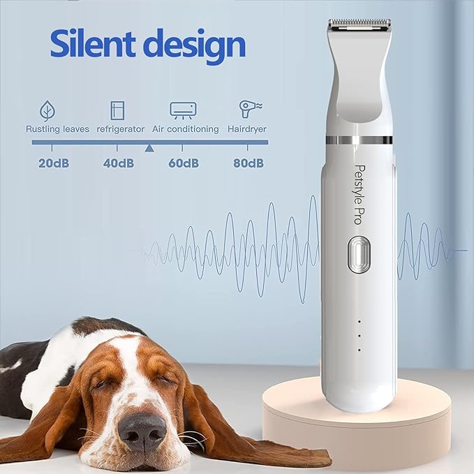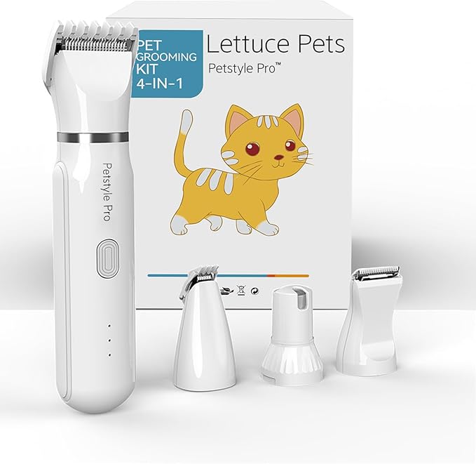 • 【PACKAGE LIST】: You will get a Petstyle Pro Kit which includes a Petstyle Pro Trimmer, Lubricant, Cleaning Brush and USB Charging Cable. Four trimmer heads (one shaving trimmer head, one foot hair trimmer head, one rounding trimmer head, one nail grinding trimmer head), three limiting comb heads (2mm, 3-6mm, 6-9mm), which are used with the limiting comb heads to effectively reserve a safe distance and control the overall thickness of the hair. Newbies don't have to worry about being clueless