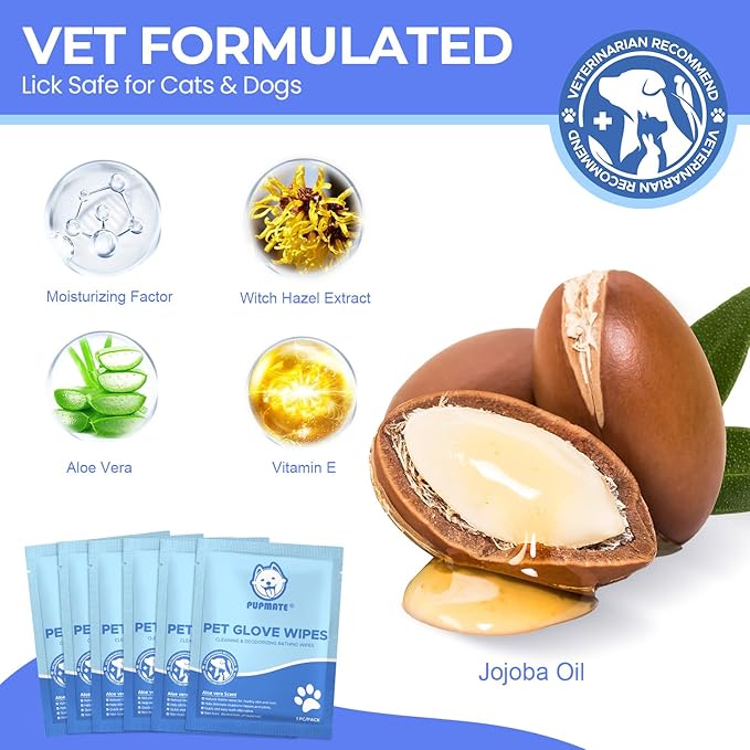 • Why choose us? PUPMATE is committed to providing the highest quality pet cleaning products. Our glove wipes are safe, gentle, and incredibly convenient, ensuring your pet stays clean and healthy whether at home or on the go. Our products have passed pet safety MSDS tests, so you can use them with confidence. If you have any questions, please contact our customer service, and we will resolve them promptly