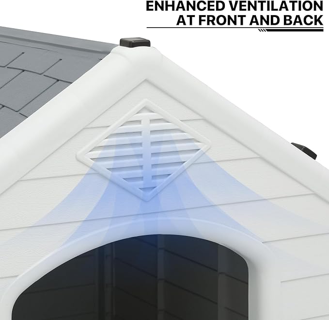 • Year-Round Comfort - Experience the perfect blend of fresh air and comfort with our dual-ventilated plastic dog house. Regardless of the season outside, our design ensures your pet remains cool in the summer and snugly warm in the winter.