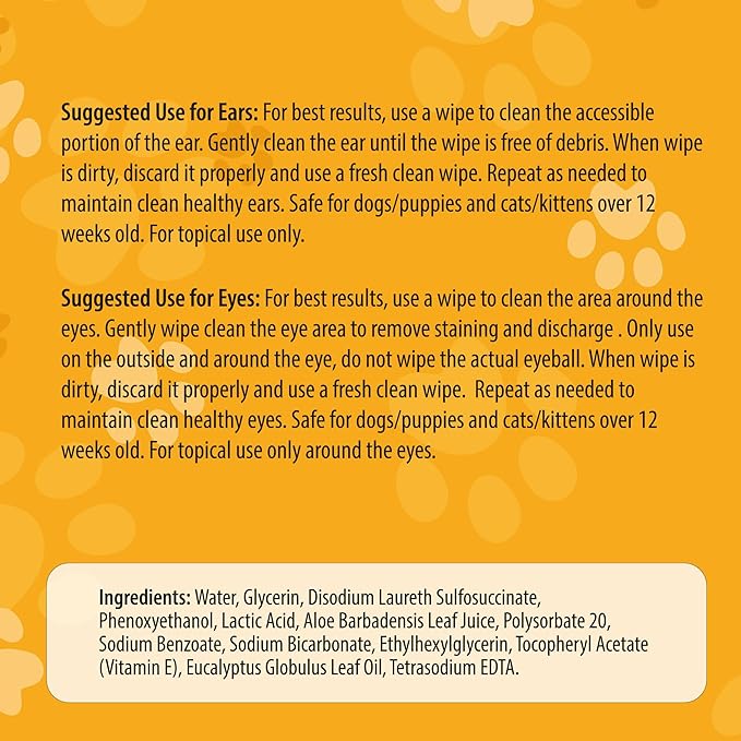 • Our pre-moistened pet wipes are perfect for daily use to control wax buildup in the ear and keep the eyes of your fur baby free of debris.