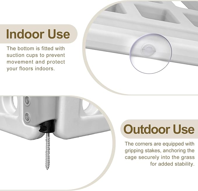 • INDOOR AND OUTDOOR:At the bottom link is equipped with sturdy holding Rubber anti-skid pad, which is not easy to slide. It is better when placed on smooth floors and tiles.In addition, it is equipped with screws, which can fix the fence when it is used on outdoor grass.